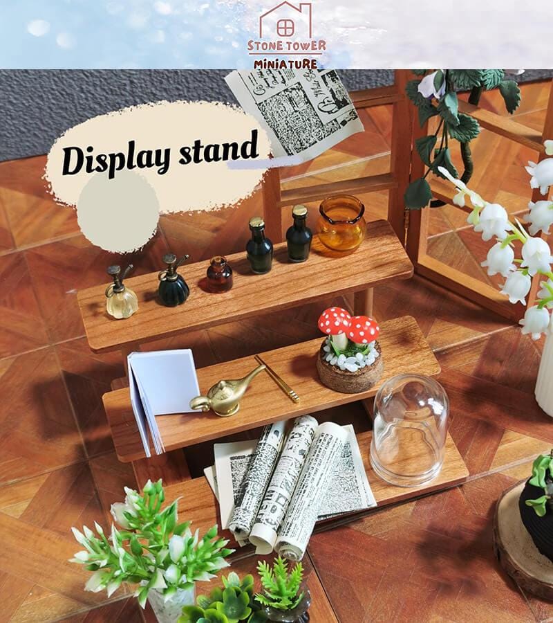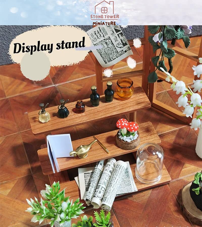 Dollhouse Miniature Wooden Display Shelf: Tiered Flower Stand
