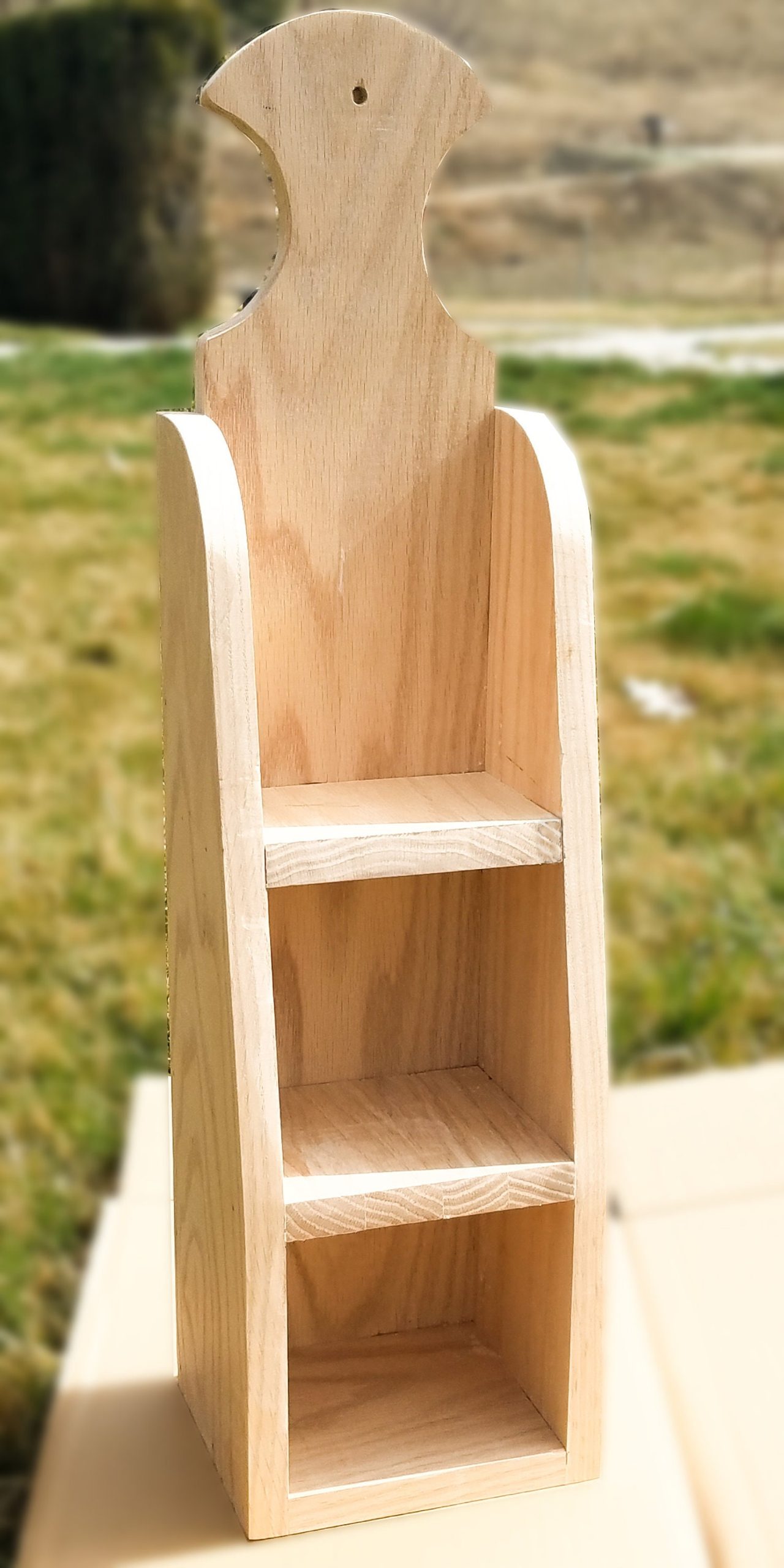 A cute little decorative shelf that can be hung up or sat on a counter. Can be styled for decor or is sturdy enough to handle day to day use. Created on a little farm in the Treasure Valley, each piece is made with love by Jeff, with the help of his wife Julie. Pieces finished to order, available in the colors pictured, or we can leave it ready for you to customize. If you love the natural oak wood, we can add a clear seal as well.