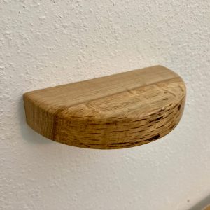 Vintage wood shelf with hand cut bracket details and aged patina, solid wooden wall mounted display shelf.