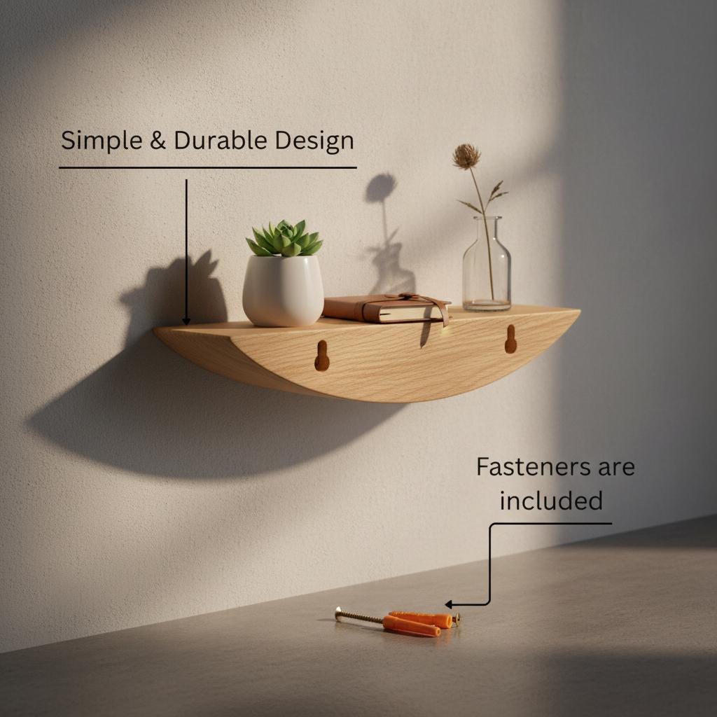 Display your favorite objects with warmth and simplicity using this handmade wooden floating wall shelf. Designed with a soft curved edge and natural wood grain, this shelf adds a calm, minimalist touch to any room.